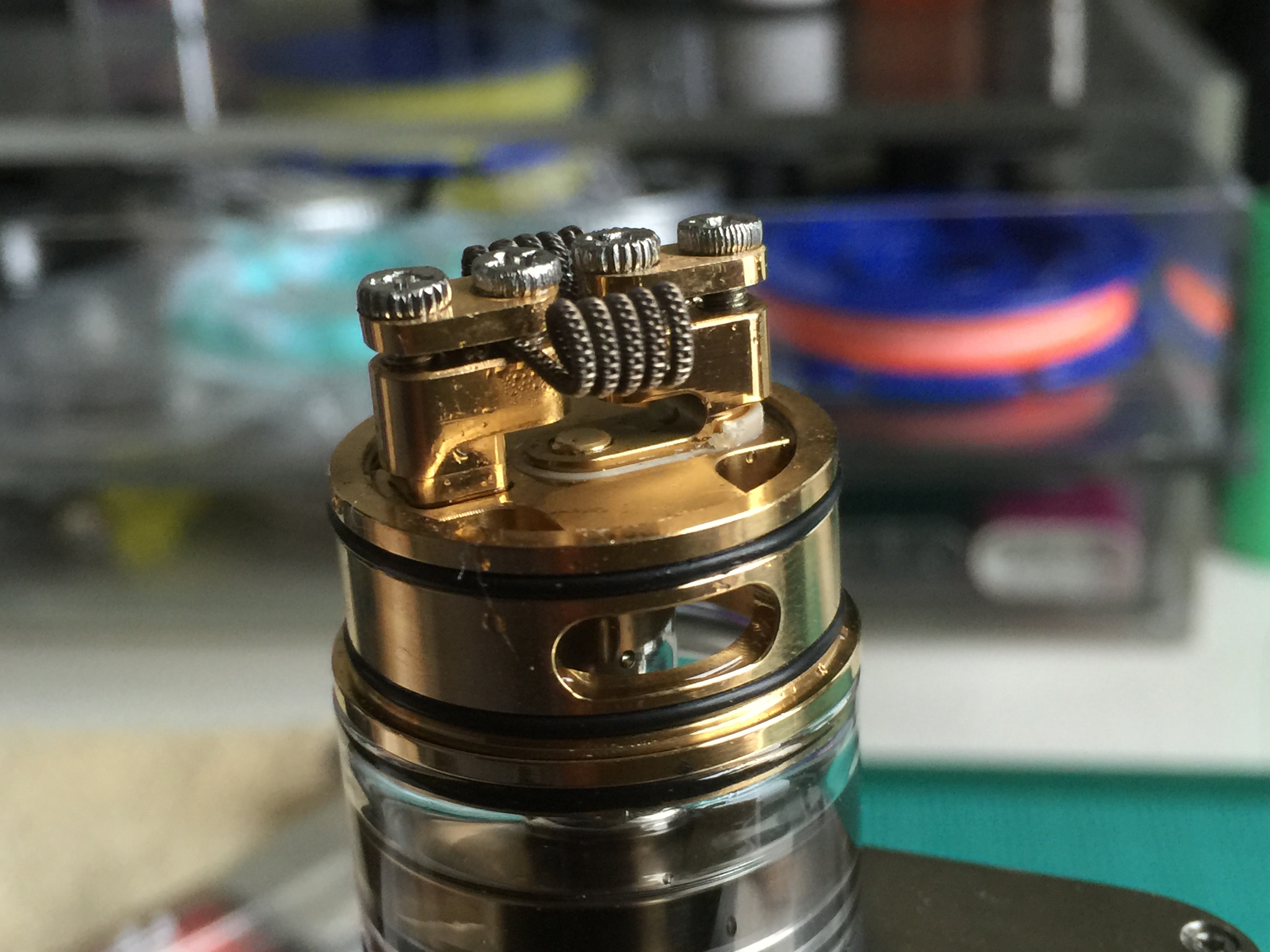 このままの状態でビルドしてウィッキングしてからガラスタンク通してスレッド固定してやれば自然とウィックも固定されるって寸法です。